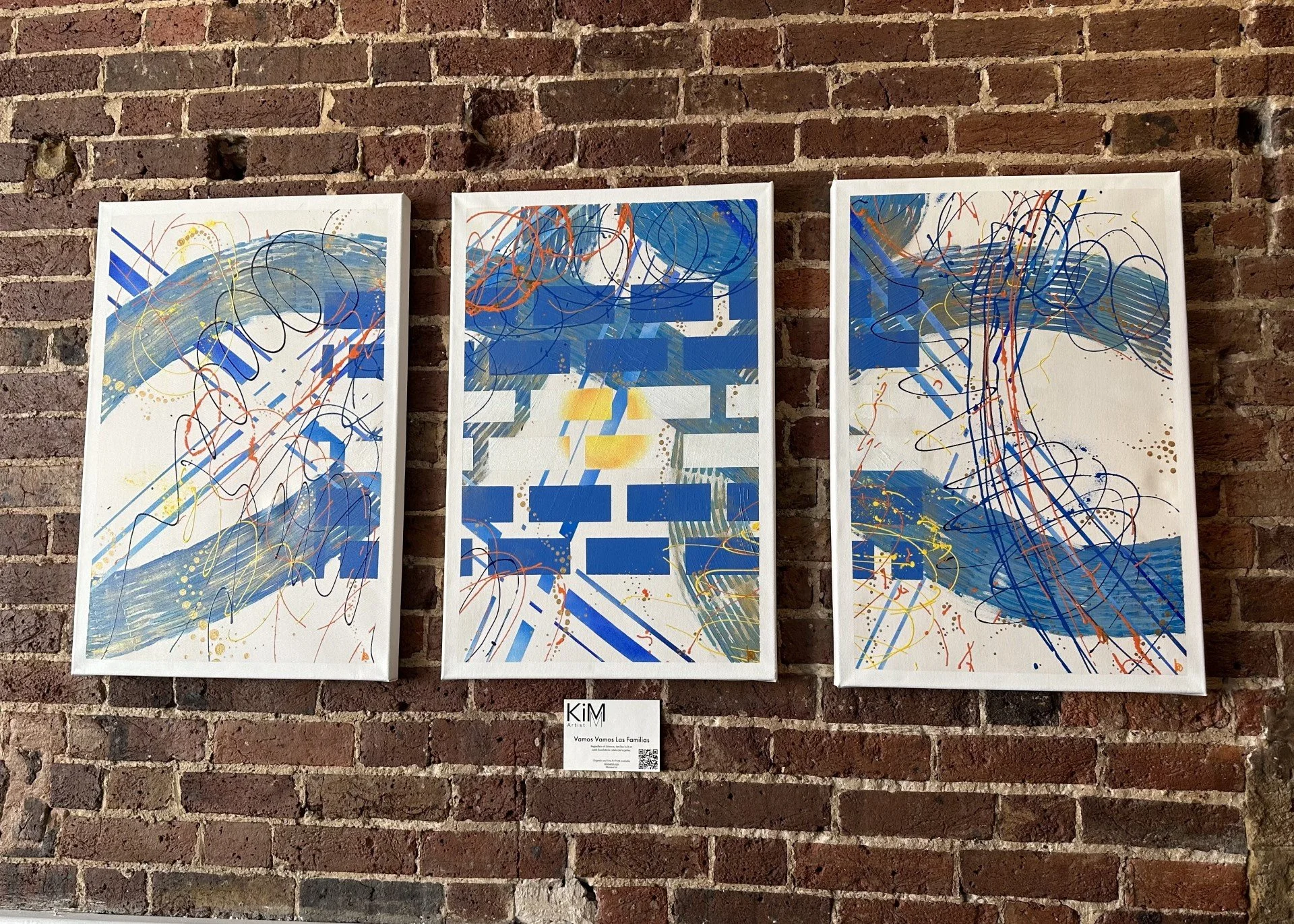 Kim M Artist has one of her signature ‘ruptured art’ triptych displayed at the award winning Argentinian Restaurant Baqueano located in Brighton.