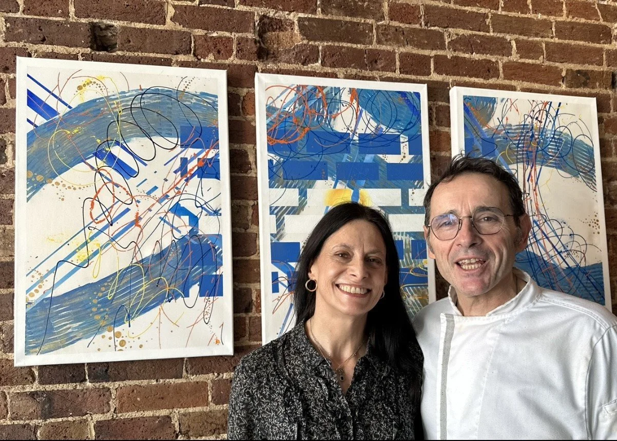 Kim M Artist is delighted that three of her original art works are hung in the award wining restaurant, Wild Flor.